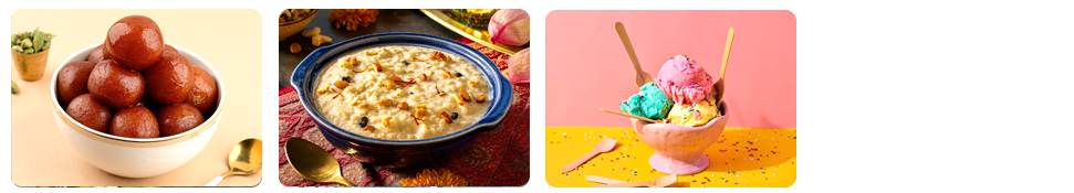 • Desserts: Cupcakes, pastries, gulab jamun, ice cream